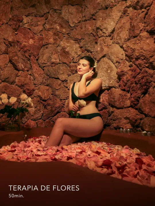 Sumérjase en un baño termal con pétalos de rosas en una terma subterránea diseñada para calmar, hidratar y armonizar los sentidos. Ideal para pieles sensibles, la Terapia de Flores relaja profundamente, mientras aporta vitaminas que nutren la piel, devolviéndole su aspecto fresco y radiante, al mismo tiempo que deja impregnada una fragancia sutil que ayuda a conciliar el sueño. Un verdadero homenaje al autocuidado, la belleza y la naturaleza.